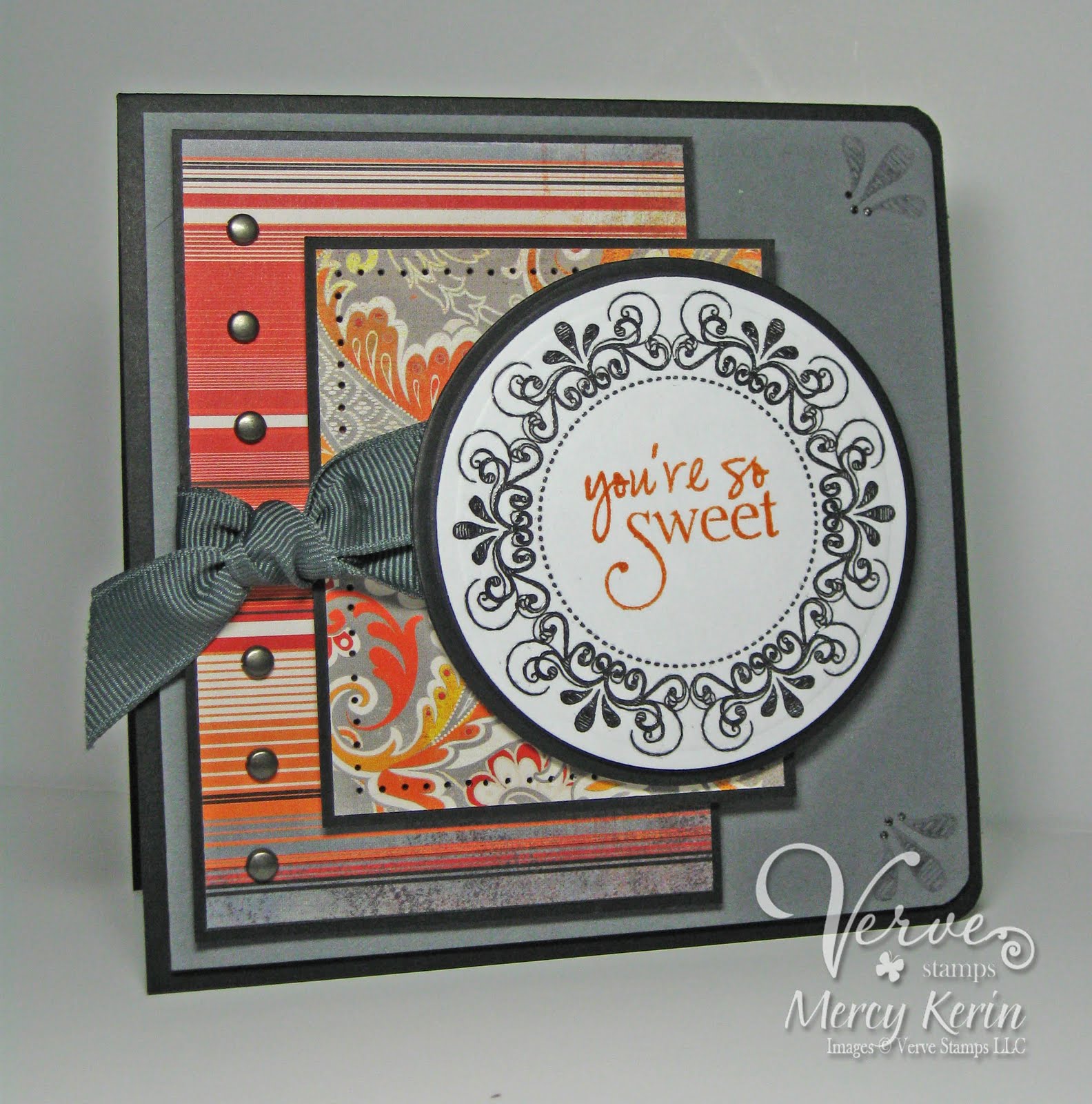 I'm just now getting back from a trip to Ohio...couldn't wait to see the new Verve stuff! LOVE you gorgeous card, Mercy! That circular flourish is awesome and has so many possibilities!